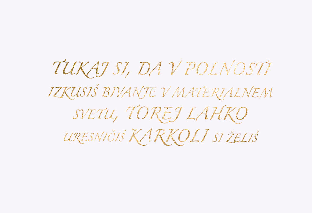 - Tukaj si, da v polnosti izkusiš to bivanje v materialnem svetu, torej lahko uresničiš karkoli si želiš.