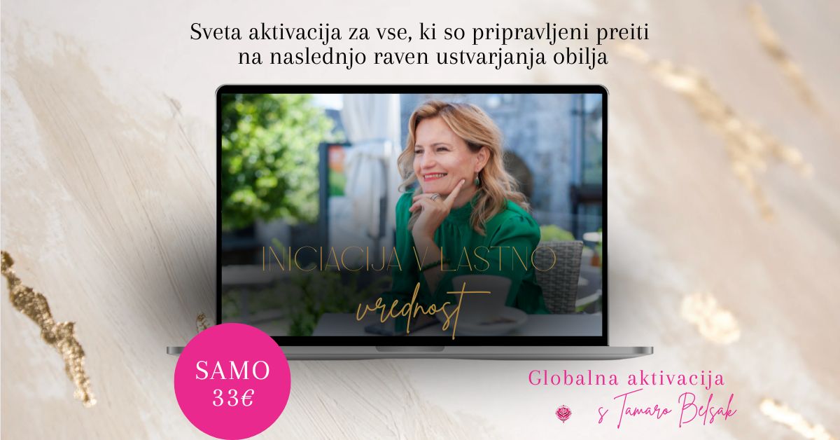 Sama pa te srčno vabim na online dogodek, na SVETO AKTIVACIJO SVOJE LASTNE VREDNOSTI, ki te bo pri tem močno podprla. Skozi svoje življenjske izzive sem ugotovila, da vso moje delo, ves moj napredek in vse, kar počnem, ko sledim klicu svoje duše in notranjemu vodstvu, ki me zmeraj vodi izven prehojenih poti, temelji na eni sami stvari in to je občutku svoje lastne vrednosti.