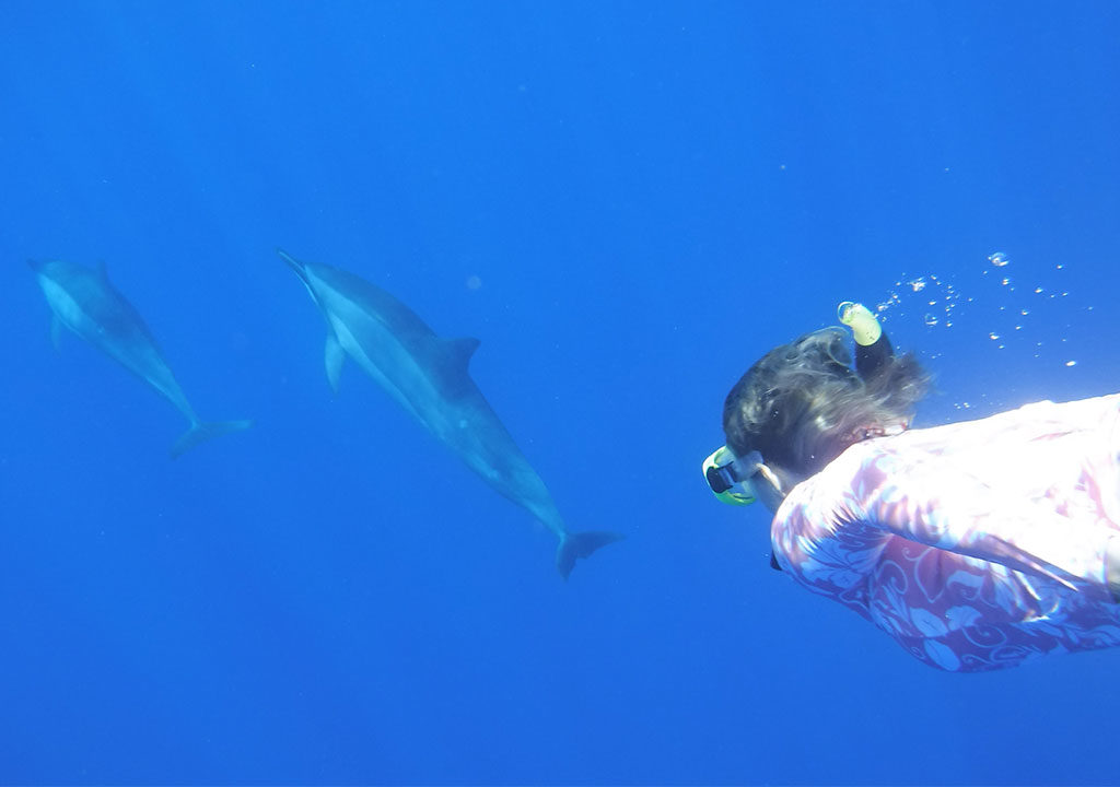 ♥OPOMBA: Plavanje s havajskimi spinerji je trenutno še prepovedano. Še zmeraj pa lahko imamo stik z njimi iz čolna ali na razdalji 50 m in plavamo z drugi vrstami delfinov.