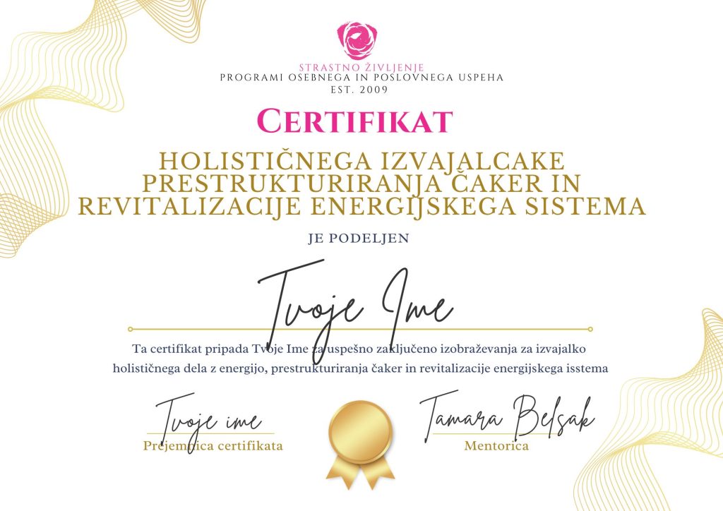 Lahko se odločiš za delo samo zase ali pa za certificiran program, s katerim boš ta znanja lahko delil/a z drugimi. Za to ne potrebuješ predhodnega znanja o delu z energijo, saj je program zelo podroben in jasen. Imel/a boš pa tudi mentorsko podporo z moje strani, če se odločiš za certificiran program. V certificiranem delu prejmeš tudi vsa Orodja vstajenja, s pomočjo katerih lahko svoj energijski sistem postopoma dvigneš na višjo vibracijo in tako še ojačaš svojo moč transformacije pri izvajanju holističnega protokola prestrukturiranja čaker in revitalizacije energijskega sistema.