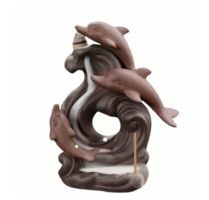 Potopi se v svet tišine s kadilnico DELFINJI VAL, ki je izdelana z izjemnimi podrobnostmi. Prikazuje tri čudovite delfine, ki jahajo nežen val. Ko dišeči stožec kadila gori, se ustvari očarljiv učinek slapa, ki prikliče pomirjujočo vedrino oceana. Kot nalašč za tiste, ki iščejo pridih čarobnosti oceana v svojem prostoru. Deluje zelo pomirjujoče. Poštnina je vključena.