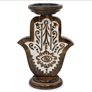 Čudovit svečnik iz magovega lesa bo prinesel toplino v vsak prostor. Višina 25, širina 18 cm. Simbolično pa Hamsa deluje tudi kot talisman zaščite, sreče, obilja miru in plodnosti. Zato je lahko tudi lepo in pomeljivo darilo. Mangov les je znan po svoji vzdržljivosti. Pogosto se uporablja za ročno izdelane izdelke iz lesa zaradi svoje prijaznosti okolju ter čudovite teksture. Poštninaje vključena.