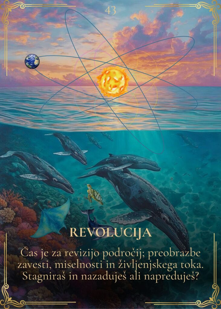 44 kart, v katerih je zakodirana vibracija radosti in modrosti delfinov in kitov, s katerimi plavam, telepatsko komuniciram ter se od njih učim že od leta 2012.
